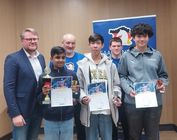 Am letzten Spieltag stand die Saarlandmeisterschaft der Spielgemeinschaft Eppelborn/Illingen in der Altersklasse U 20 schon so gut wie fest. Als dann die Gäste von Merchweiler/Wemmetsweiler nur mit 2 Spielern antraten, war der ungefährdete 3,5 : 1,5 Heimsieg ein leichtes Spiel. Marius Feidt erspielte an Brett 1 ein Remis, Jano Roob gewann an Brett 2. Louis Tischer und Alexander Schmidt gewannen kampflos. Damit hat man sich nun für die mitteldeutsche Meisterschaft qualifiziert.